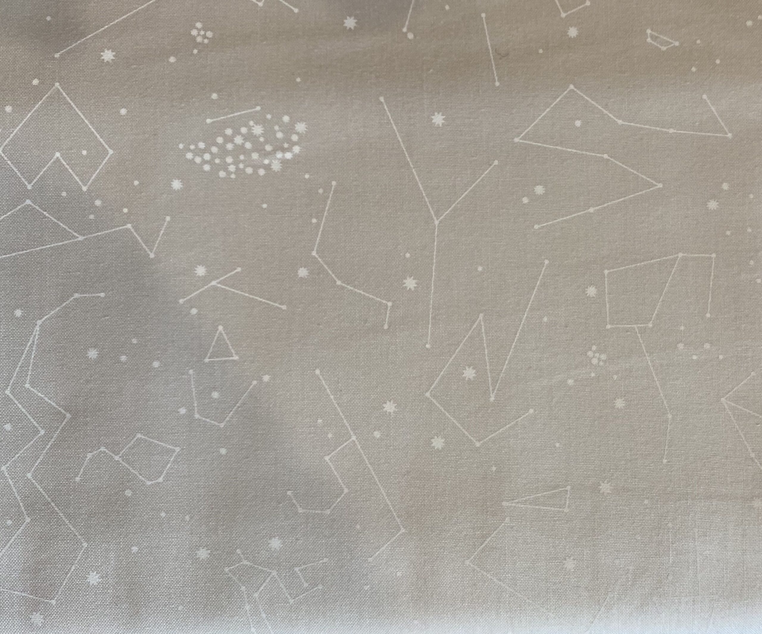 White constellation designs on an ecru background. Â Â This unusual design is great for backgrounds and borders.