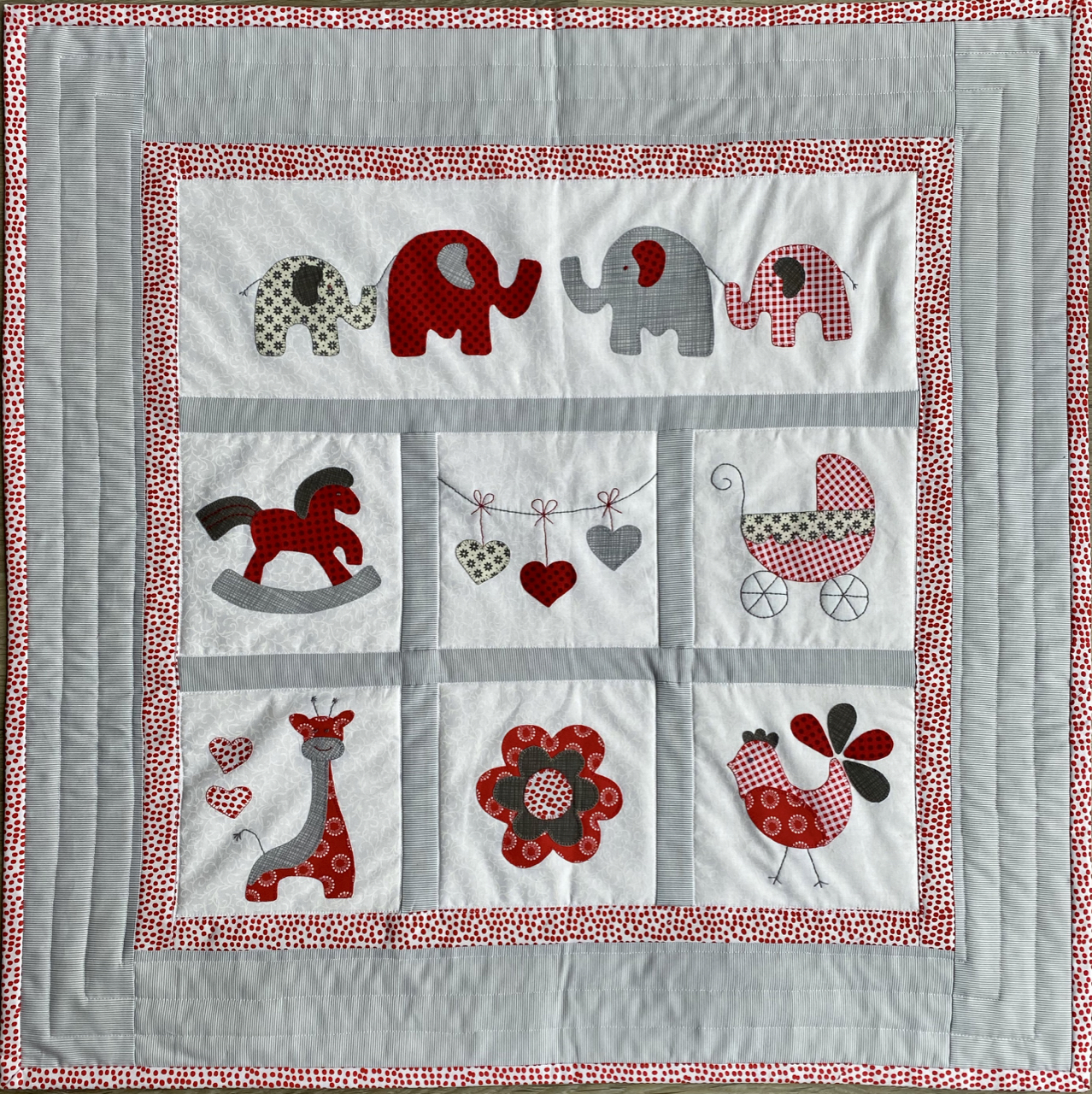 Baby Quilt Kit in grey and red