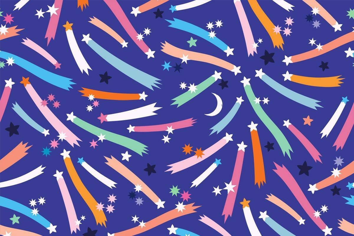 This bright fabric comes from the Dashwood Cosmic Cowboy range. Featuring multi coloured shooting stars on a blue background. This great fabric is ideal for patchwork and all craft projects