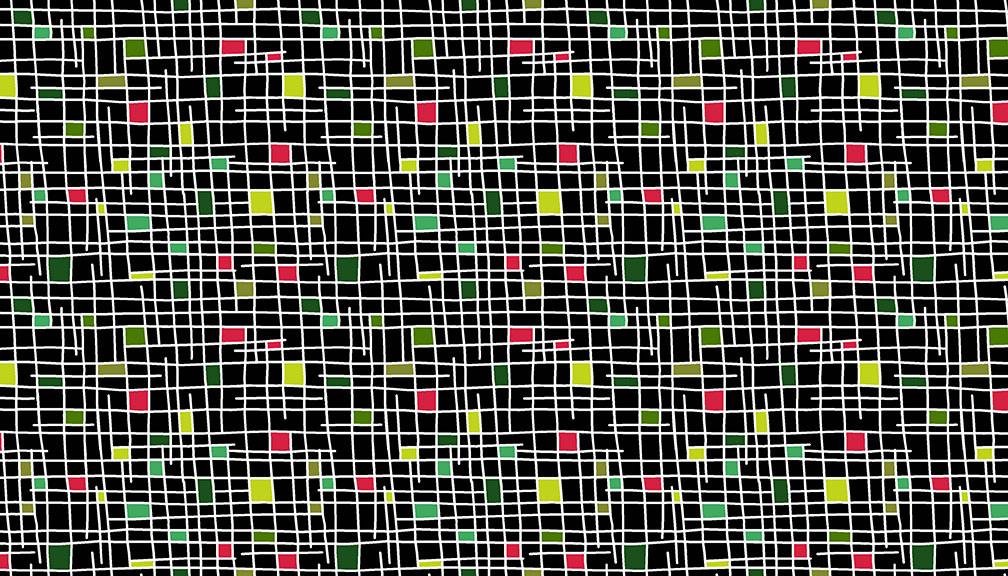 Black and white grid design with bursts of bright colours including lime and pink  Great fabric for all craft projects