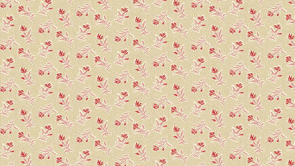 Dainty floral designs in pink and red  on a deep cream hashed background.  Classic design great for all types of craft project