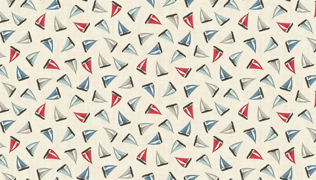 Makower Ahoy Range – this fabric features red and blue sailboats on a cream background