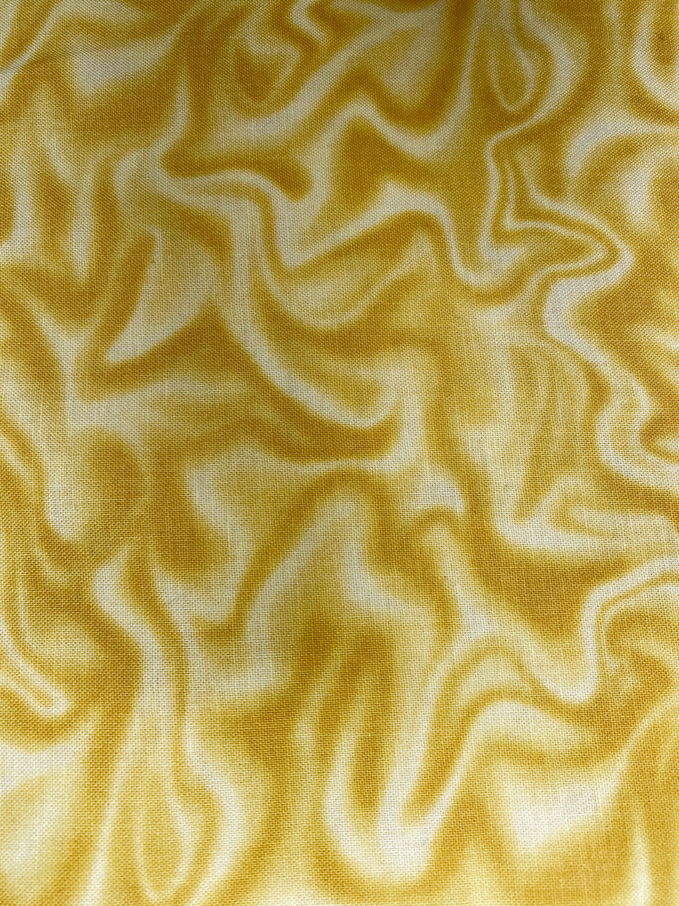 Various shades of gold make up this bright , swirly print. Â This fabrics vibrant shades make it a valuable addition to any stash